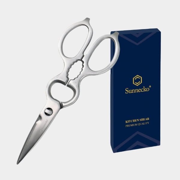 - Multipurpose Scissors for Kitchen - This 8 inch kitchen scissors all purpose is a household essential as it provides you with all-around help for your cooking task, enabling you to cut meat, vegetables and herbs effortlessly. The typically designed heavy duty scissors can work perfectly as cooking scissors, seafood scissors and poultry shears.